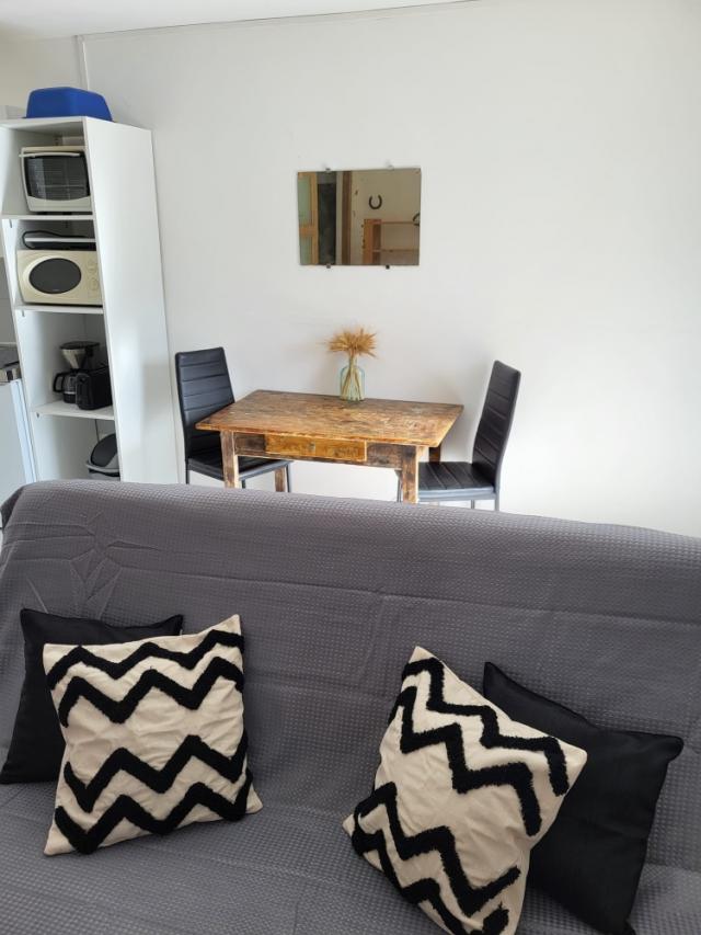 Fonctionnel, bien agencé, meublé et équipé, la location est en ré de jardin, le parking sous vos yeux, avec un grand séjour, une chambre et la salle d'eau. La terrasse pourvu d'un premier salon de jardin, et le jardin arboré avec transats, d'autres salon de jardin et le barbecue !