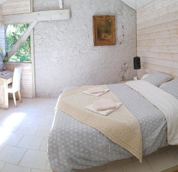 Sur deux niveaux avec terrasse couverte, accès piscine, terrain de pétanque, parking, chemin de randonnée pédestre et VTT traversant la propriété, le gîte est organisé comme suit :