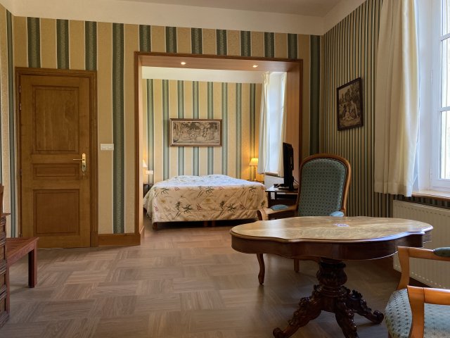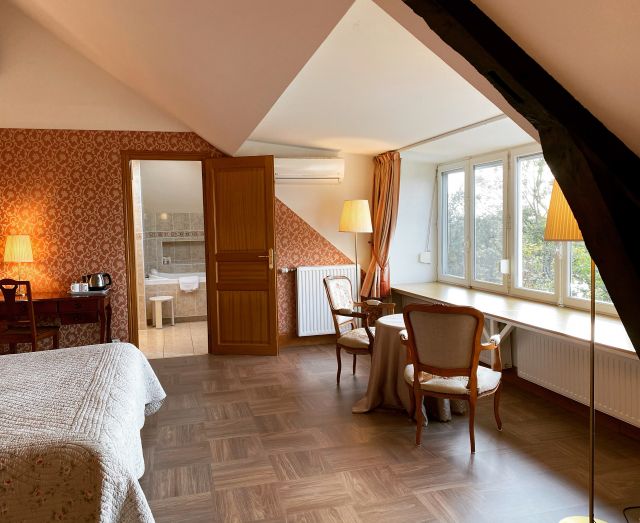 Les chambres offrent un grand confort, climatisation avec coin salon, wifi, TVsat. et salle de bains équipées de douche, toilette et bain balnéo de 80,-€ à 100,-€ (petit-déjeuner inclus).