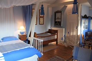 Suite familiale composée de 2 chambres séparées. une grande chambre avec un lit de 160 et un lit ancien pour un enfant de moins de 10 ans, une petite chambre avec 2 lits en 90, salle de bains avec douche, baaignoire et wc.