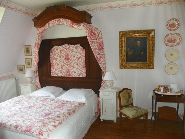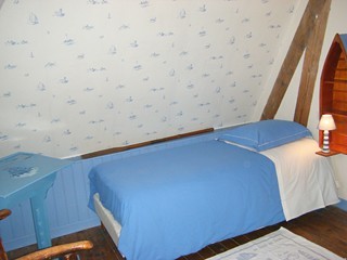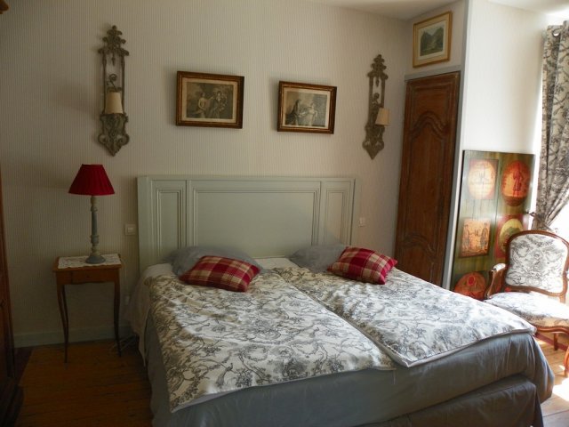 Chambre double avec 1 lit en 180 ou 2 lits en 90, salle de bains et wc particuliers.