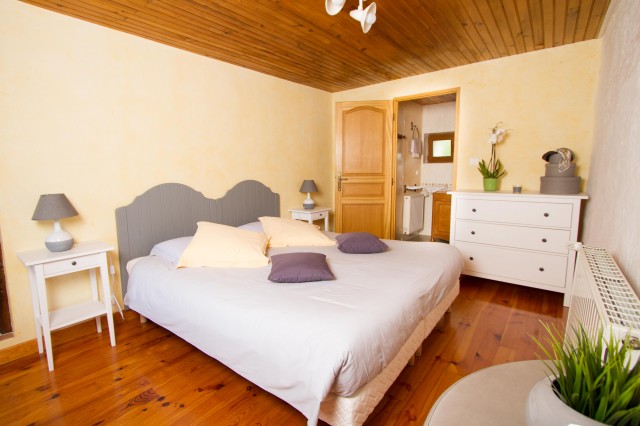 Salle de bain et wc privés. Grande salle à manger et salon de lecture. Grand jardin ombragé. Parking. Aire de jeux pour enfants à 500 m. Langue FRANCAISE et ANGLAISE .