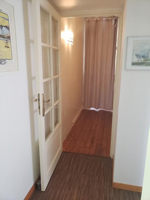 Le logement se compose de 2 pièces et d'une salle de bains et wc privatif.La chambre dispose d'un lit 140 avec 2 matelas distincts,d'une armoire avec penderie,de 2 chaises et d'une console. Le salon attenant ouvre(baie vitrée coulissante) sur une terrasse orientée sud.Ce salon dispose d'une table basse,d'un canapé convertible pour transformer le salon en deuxième chambre si besoin.Un placard aux portes coulissantes offre une penderie et des étagères contenant jouets divers, livres.Un petit meuble contient vaisselle nécessaire pour 4 personnes,ainsi qu'un micro ondes et bouilloire électrique.La salle de bains et wc privatifs jouxte ces deux chambres et le couloir d'accès au logement est muni d'un rideau pour respecter l'intimité des invités.L'environnement est très calme. De jolies balades à pied vous attendent au bord de la rivière Elorn qui se jette dans la rade de Brest.