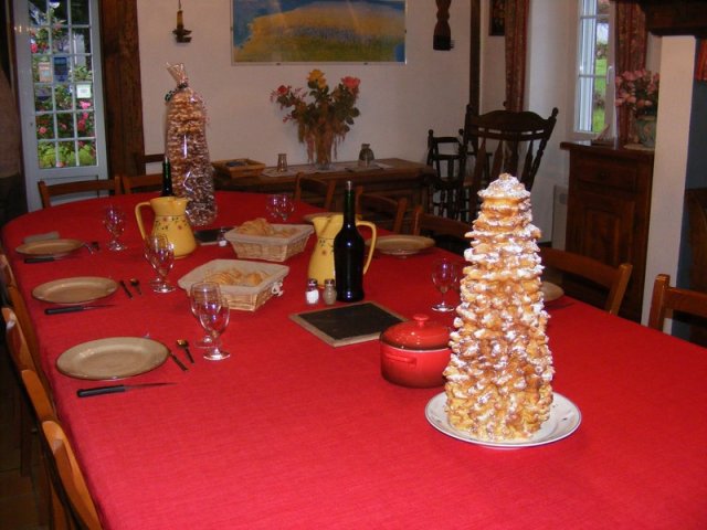 la table d'hôtes, moment convivial,vous pourrez déguster les produits de notre ferme (poulets, pintades, canettes, oies et les légumes du potager).