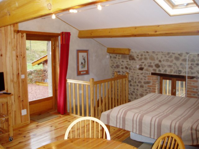 Chambre d'hôte / gîte studio avec kitchenette, parking privé, terrasse devant la chambre dans ancienne ferme des monts du lyonnais. En pleine campagne, confort et tranquillité.