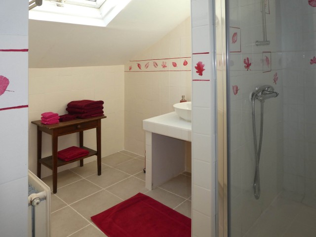 - La chambre rouge est une très grande chambre familiale de 22m², avec une belle vue sur le jardin (1 à 4 personnes)