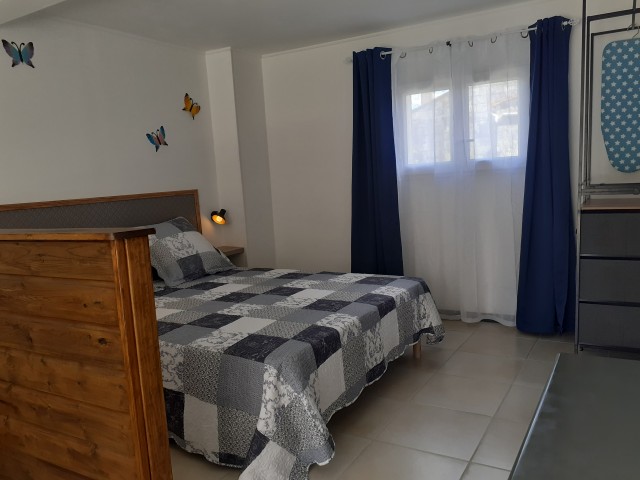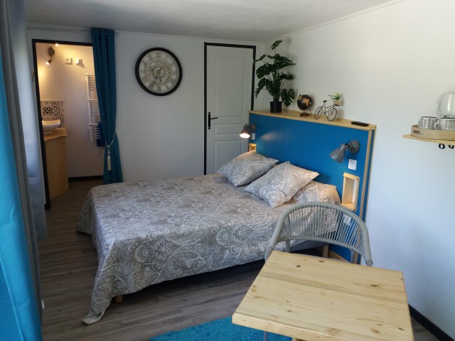 La chambre se trouve hors de la maison mais coller à elle. Néanmoins, elle dispose de son entrée indépendante et deux personnes maximum y dorment en couple. Un lit bébé est gracieusement mis à votre disposition en cas de nécessité. Cependant, nous vous conseillons de venir avec les autres équipements pour bébé (chauffe biberon, tapis à langer, etc).