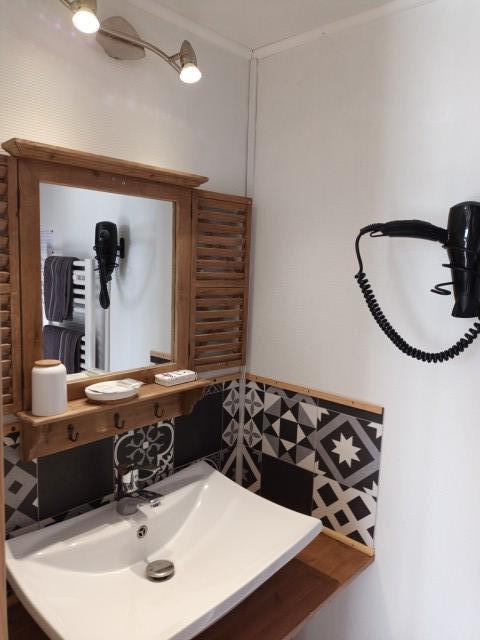 Dans la salle d’eau, vous profitez d’une grande vasque et d’une cabine de douche 120 cm X 80 cm. Avant tout, les wc également privatif sont aussi séparés de la salle d’e