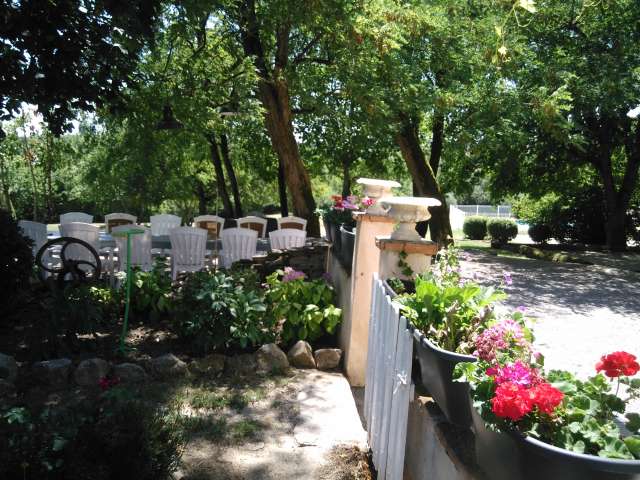 Devant la maison, à l’ombre des arbres centenaires, la grande table invite à la convivialité pendant que la piscine et ses transats incitent au repos et à la détente. Vous pourrez aussi tout à loisir jouer au ballon sur le mini terrain de foot, au ping-pong ou encore à la pétanque sous les arbres pendant que les plus jeunes enfants profiteront de l’espace jeux.