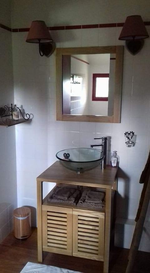 Au premier étage, 2 chambres avec chacune WC et salle de douche italienne privative. Une chambre " côté jardin "avec 1 lit 2 pers. et 1 lit 1 pers. (Salle d eau et WC).et une chambre " côté campagne "avec 1 lit 2 pers. et 1 coin bébé (lit bébé et matériel à disposition), (salle d'eau et WC).