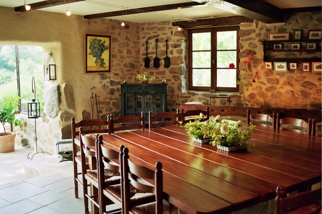 Ancienne ferme ardechoise située au milieu d'un parc de 10 ha.avec piscine et riviere dans la propriété . Cette jolie ferme est restaurée en 3 gites de 8 personnes et 5 personnes et deux coquettes chambres d'hotes . Vous pouvez aussi partager la table d'hotes où Jean Claude et Isabelle vous feront découvrir la gastronomie ardéchoise et les produits de leur verger dans la belle étable restaurée avec authenticité ! Vous pourrez aussi vous détendre avec une séance de massage traditionnel Thai ou simplement goutez au calme de cet endroit encore privilégié où regnent les rossignols et le bruit de la rivière !