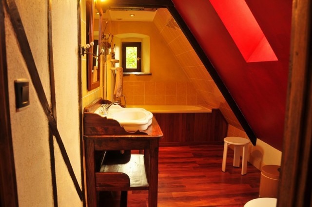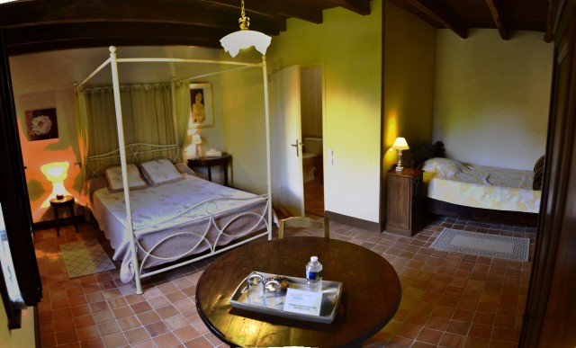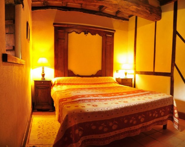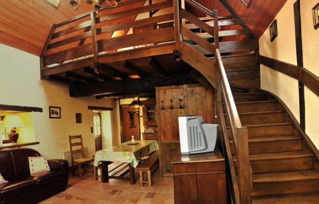 A l'étage: une seconde chambre (lit de 2 X 1.6 ou 2 petits lits) avec salle de bain et WC séparé - armoire en châtaignier __Mezzanine près du puits de lumière avec un couchage supplémentaire.