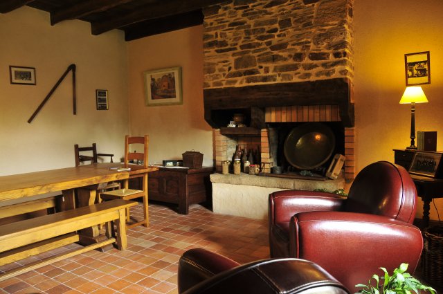 Au rez de chaussée : une chambre (lit de 2 X 1.6 m) avec salle d'eau et WC séparés - une grande armoire penderie en châtaignier ___lave linge et sèche linge __la cuisine avec gaz et plaques élect - microondes - lave vaisselle - réfrigérateur - congélateur - robot ménager - bouilloire - cafetière___une salle à manger - table 6 personnes - salon avec canapé cuir et fauteuils - poêle à bois et chauffage électrique - TV et lecteur de DVD.