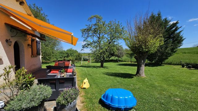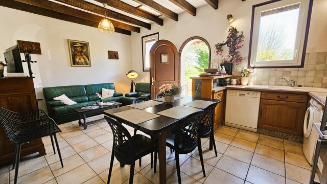 Salle de séjour avec cuisine aménagée,coin salon,lave linge, lave vaisselle,télévision couleur, petit congélateur, micro-onde, terrasse, salon de jardin, barbecue,bac à sable, balançoire, terrain 3 000m², bois de châtaigneraie. Chauffage central électrique.