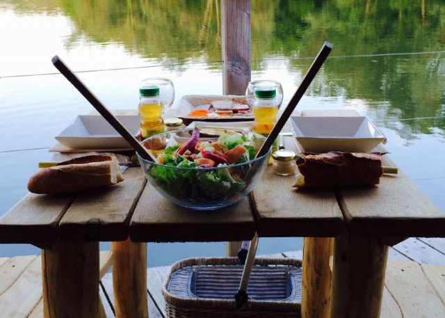 Cabane flottante accessible par barque, pour 2 personnes, petits déjeuners inclus.