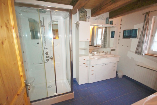 Cuisine équipée, ouverte sur séjour, salle d'eau avec cabine douche hydro-jets/WC/lave-linge & sèche-linge.