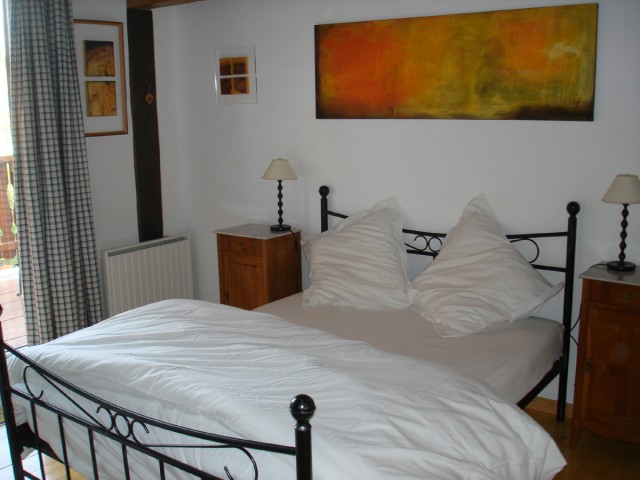 1er étage: 1 chambre (1 lit double), 1 chambre (1 lit 2 personnes), WC indépendant & salle de bain avec cabine douche balnéo/baignoire, 2ème étage: grand espace ouvert (4 lits 1 pers.)avec coin salon,canapé cliclac, espace détente. 2 TV, lecteur DVD, HI-FI. Chauffage électrique. Grand balcon, terrasse avec salon de jardin & barbecue. Accès sur jardin, parking et cour privative par un portail automatique. Tarif animal à 10€/animal/jour. Equipement bébé disponible sur demande. Lits faits à l’arrivée. Accès WIFI gratuit.