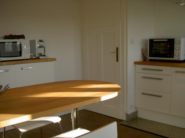 Au 2ème étage d'une maison de caractère entourée de verdure, l’appartement refait à neuf se situe dans une rue calme, comprend 1 salon avec canapé lit,balcon, TV grand écran plat, lecteur DVD; 1 chambre avec un lit double et un lit simple. Cuisine équipée avec frigo, lave vaisselle,four micro onde et four électrique, plaques électriques. Salle de bain avec baignoire, machine à laver. WC séparé.