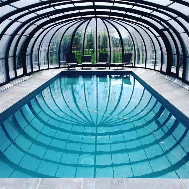 En commun piscine chauffée couverte, jardin d'hiver avec sauna, espace barbecue, terrain de pétanque.