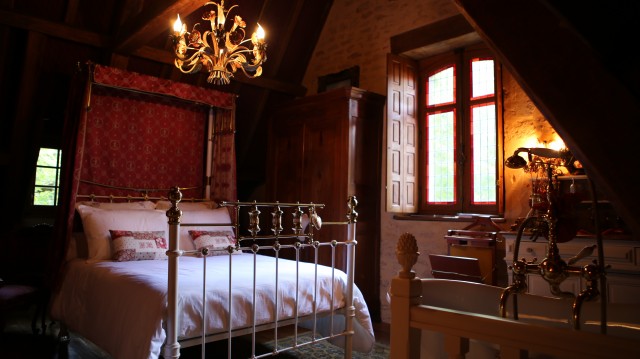 La « bordeaux » équipée d’1 lit 140 à baldaquin et sa baignoire à l’ancienne sur pieds