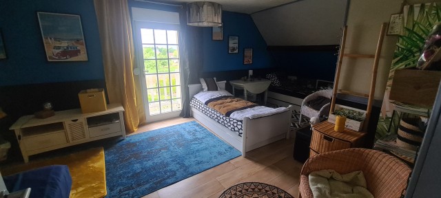 Une chambre soleil levant avec petit balcon et salle de bain interieur
