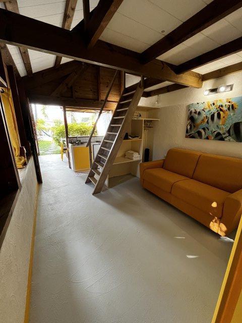 Petit bungalow typique, avec lit double en mezzanine (accès par escalier de meunier), vrai canapé lit dans le salon.